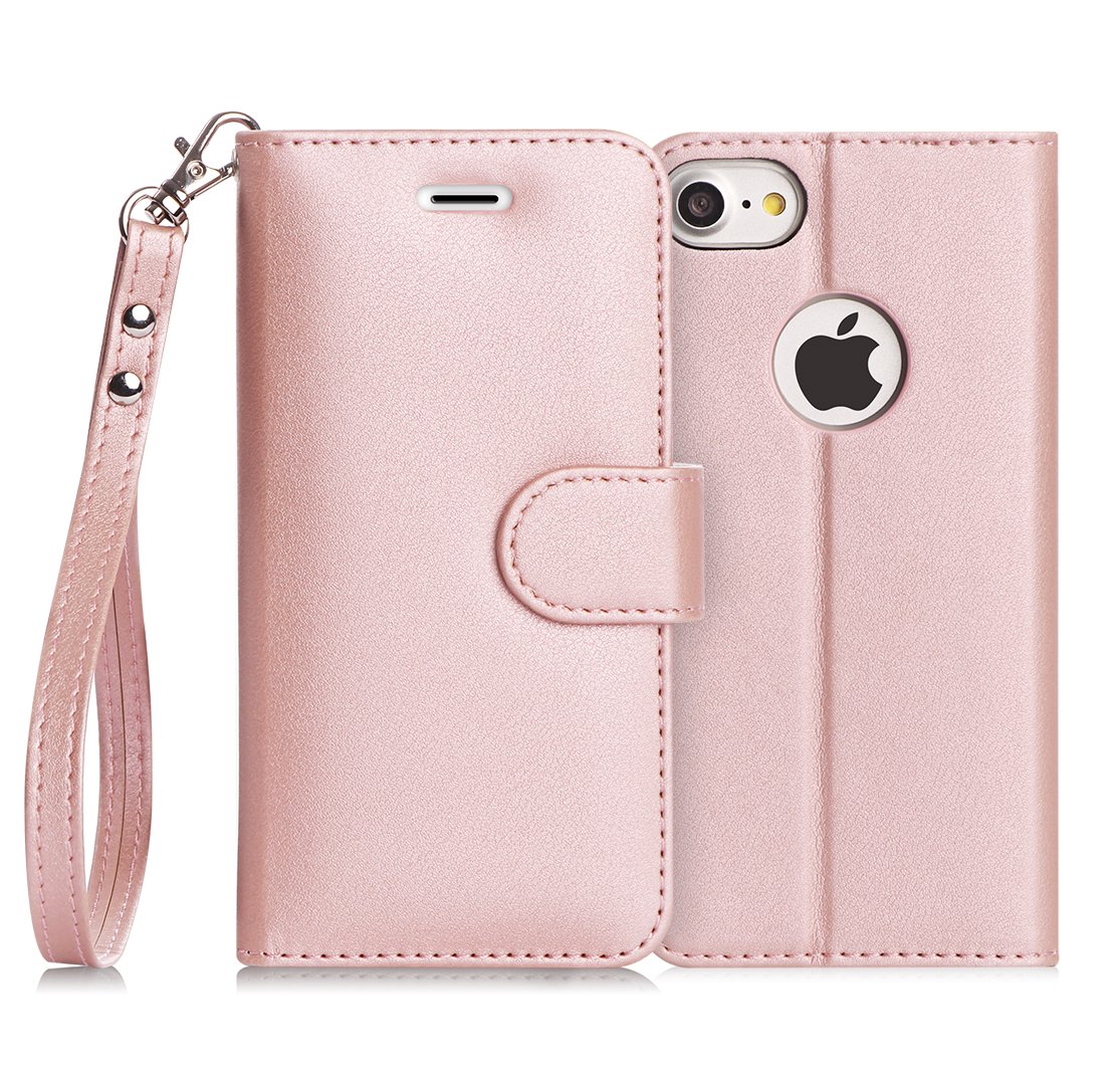 Cover iPhone 8, Cover iPhone 7, Custodia iPhone 7, Fyy® [RFID Blocco Portafoglio] Custodia 100% da del Raccoglitore Manofatto Basamento per Carta di Credito Copertura protettiva per iPhone 7iPhone 8 Rosa Oro Recensioni