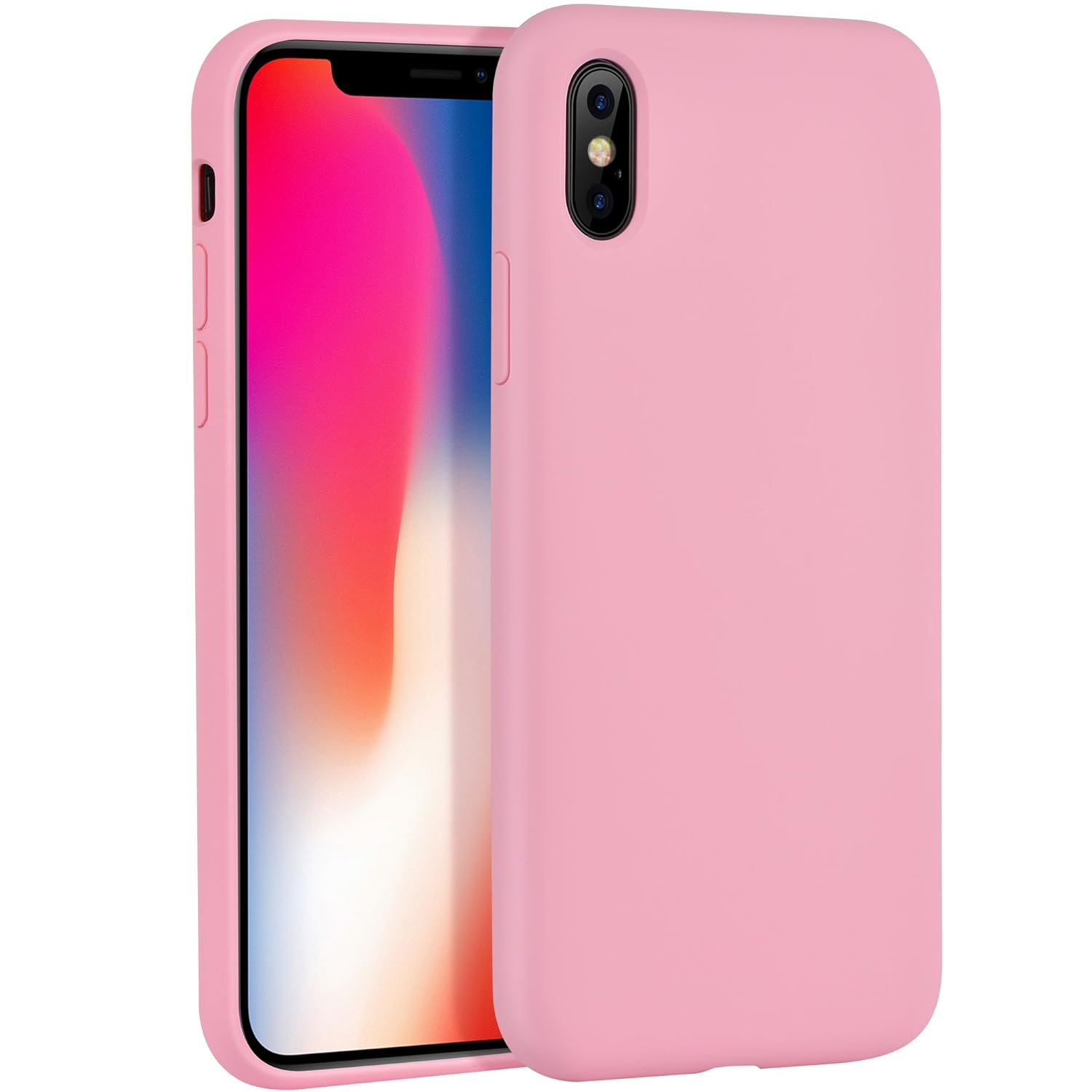 Cover iPhone X,HOCO Liquid Silicone Gel Rubber Matte Shockproof Anti Scratch Thin Ultra Slim Fit with Soft Microfiber Lining Water Resistant Shock Absorbent Flexible 3D Full Protective Cover (Rosa) Recensioni