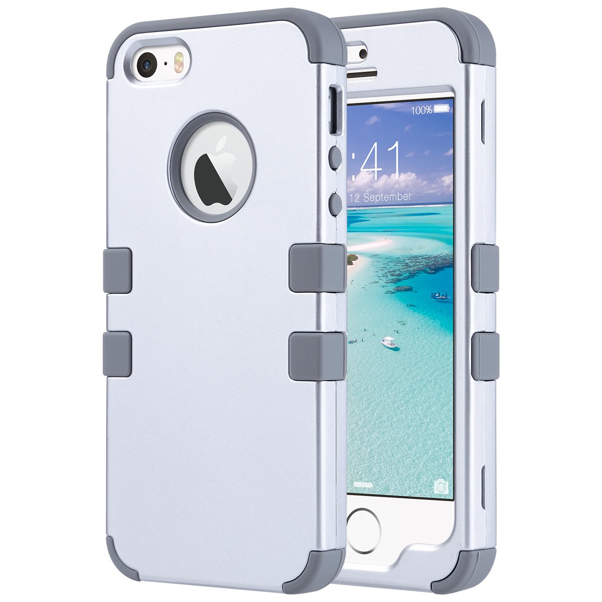 Cover per iPhone 5s, ULAK iPhone SE 5 Custodia ibrida a protezione integrale con parte esterna in 3 strati di morbido silicone e interno rigido per Apple iPhone 5s 5 SE-Argento Recensioni